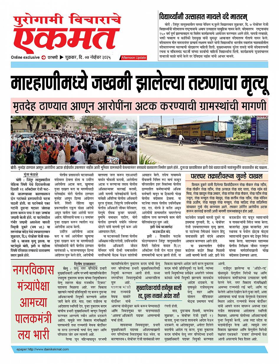 parbhani Afternoon November 07, 2025 Page 1 × parbhani Afternoon 07 Nov pbn buletin 2025 07 Nov pbn buletin 2025 07 Nov pbn buletin 2025