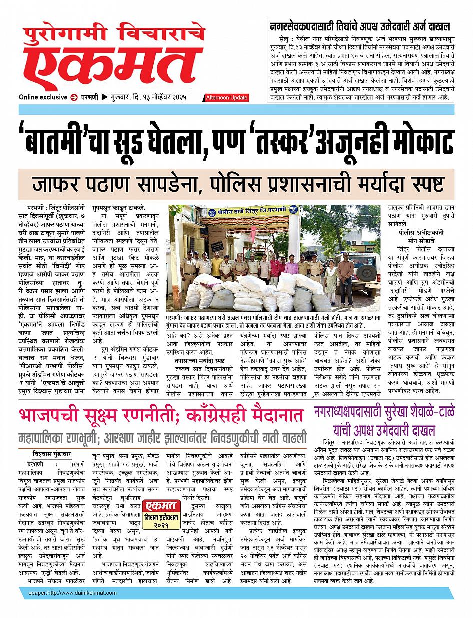 parbhani Afternoon November 13, 2025 Page 1 × parbhani Afternoon 13 Nov pbn buletin 2025 13 Nov pbn buletin 2025 13 Nov pbn buletin 2025