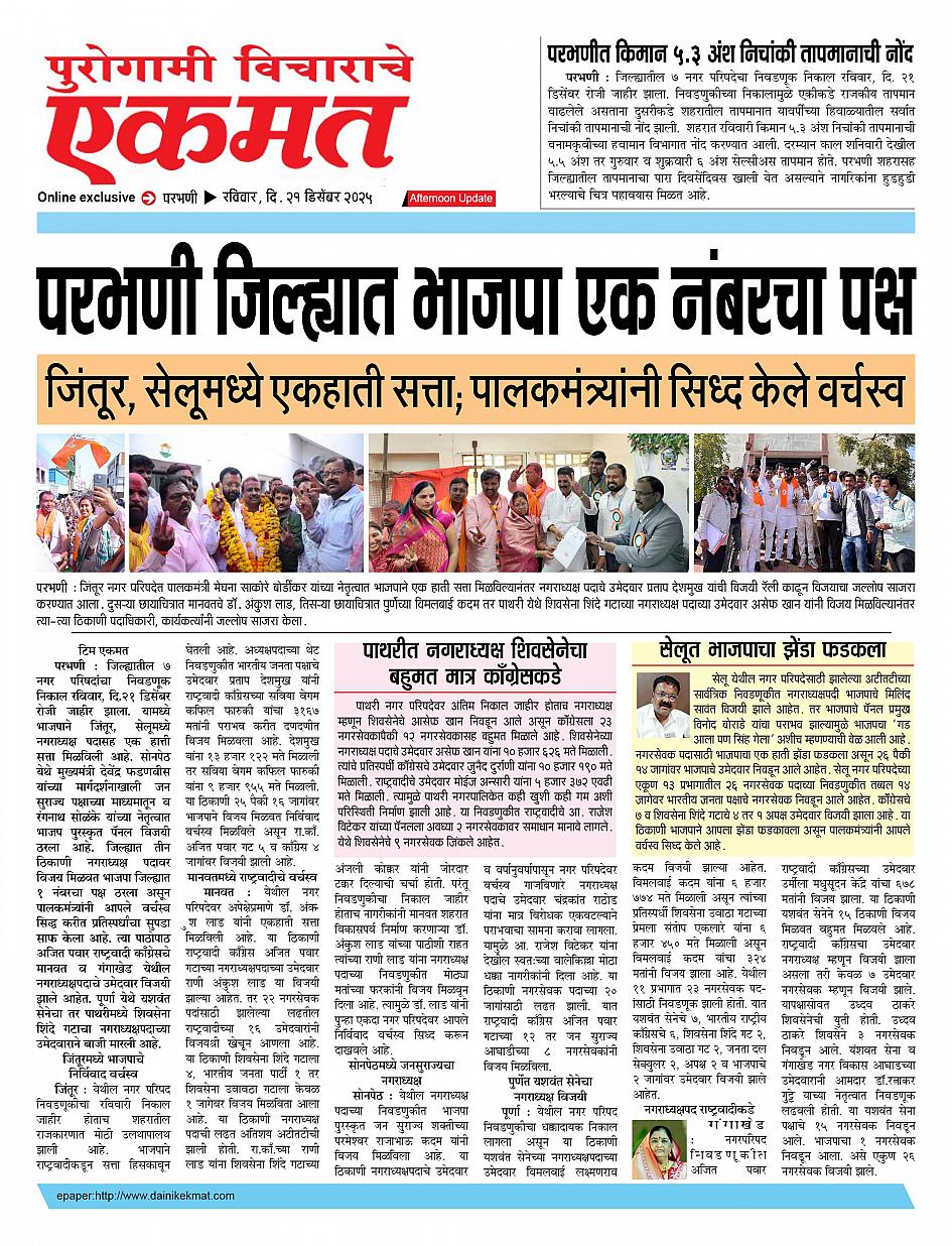 parbhani Afternoon December 21, 2025 Page 1 × parbhani Afternoon 21 Dec buletin 2025 21 Dec buletin 2025 21 Dec buletin 2025