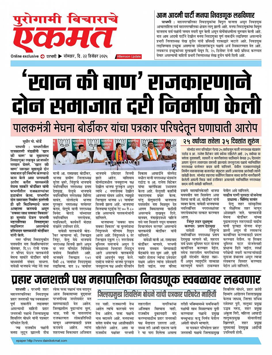 parbhani Afternoon December 22, 2025 Page 1 × parbhani Afternoon 22 Dec buletin 2025 22 Dec buletin 2025 22 Dec buletin 2025