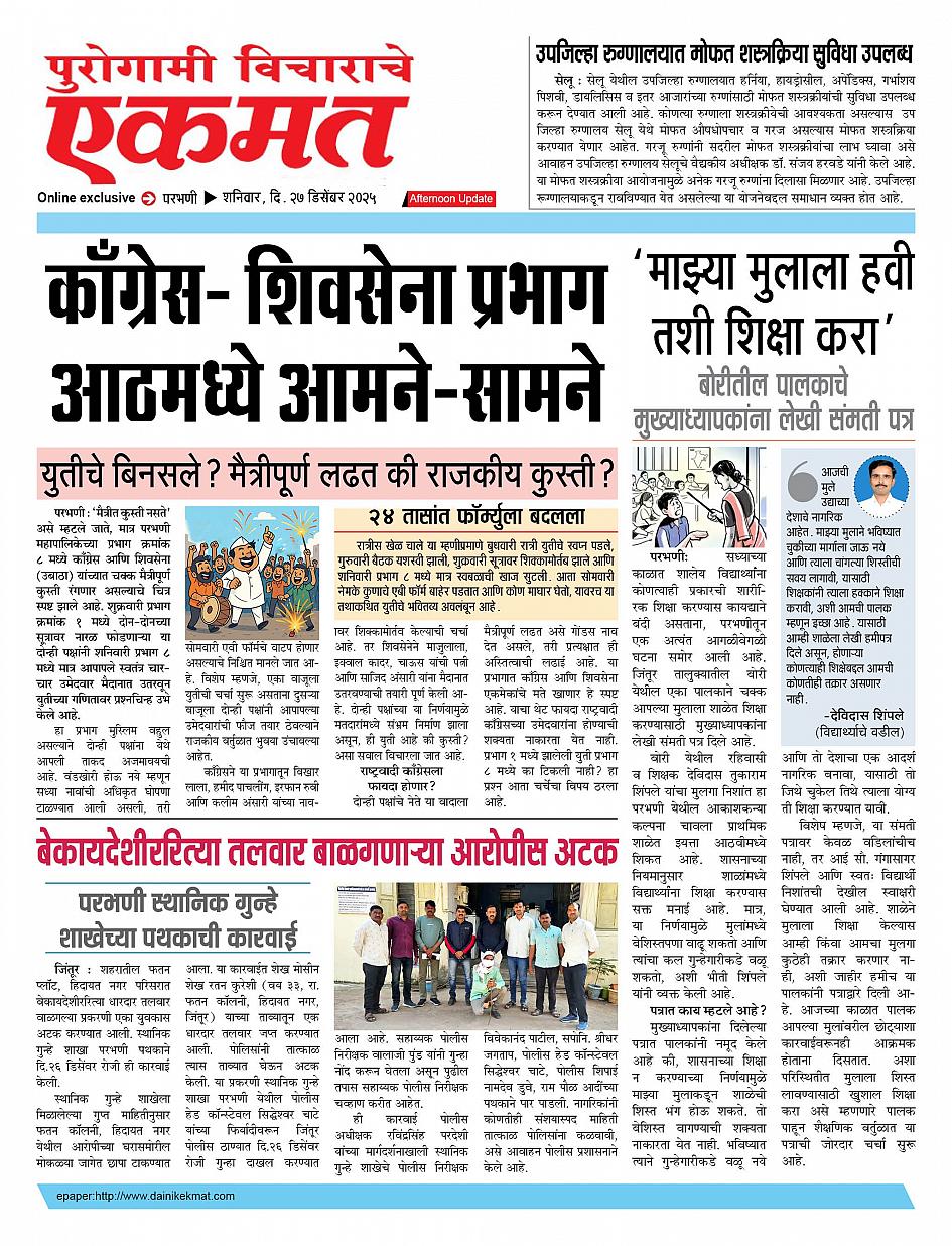 parbhani Afternoon December 27, 2025 Page 1 × parbhani Afternoon 27 Dec buletin 2025 27 Dec buletin 2025 27 Dec buletin 2025