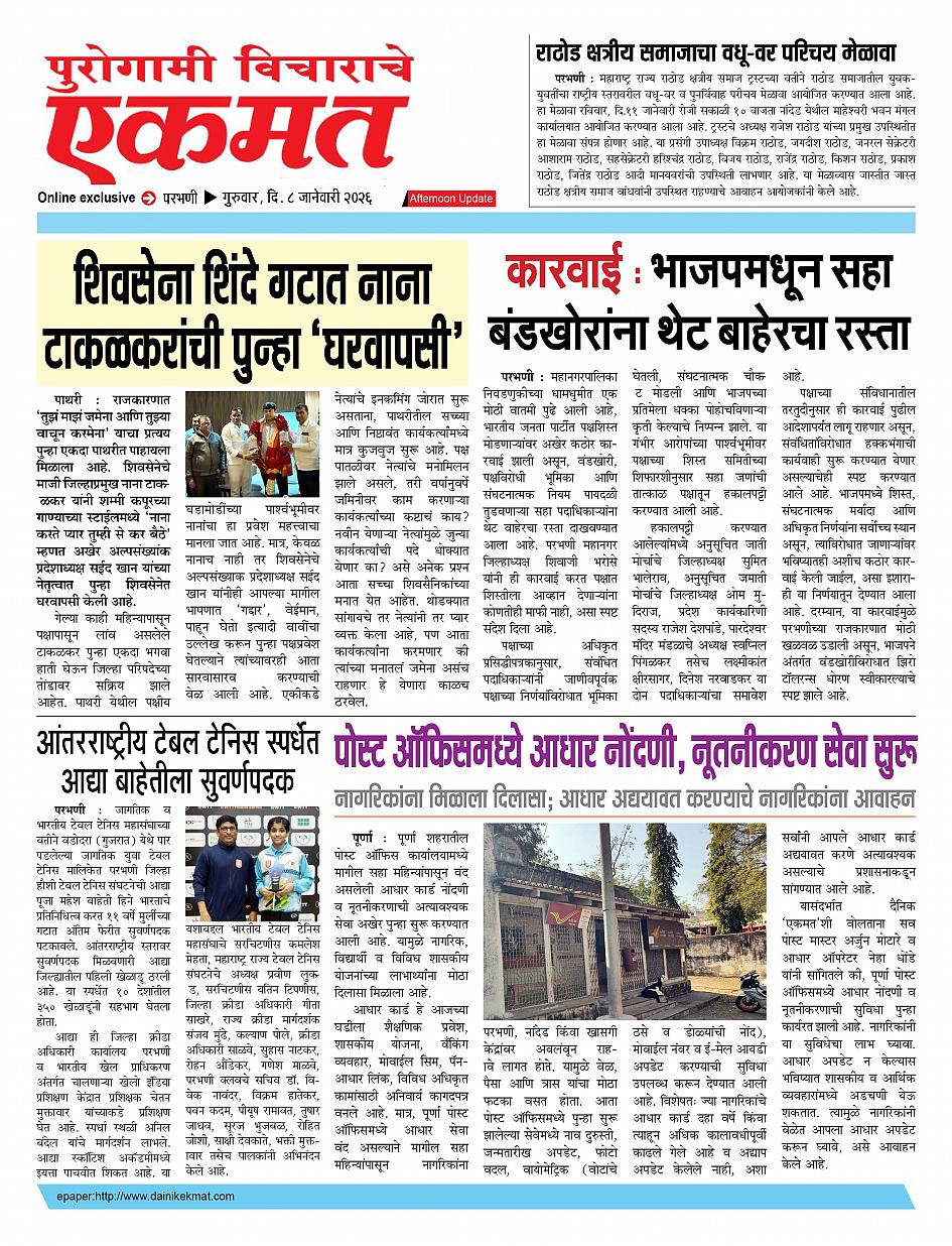 parbhani Afternoon January 08, 2026 Page 1 × parbhani Afternoon 08 Jane buletin 2025 08 Jane buletin 2025 08 Jane buletin 2025