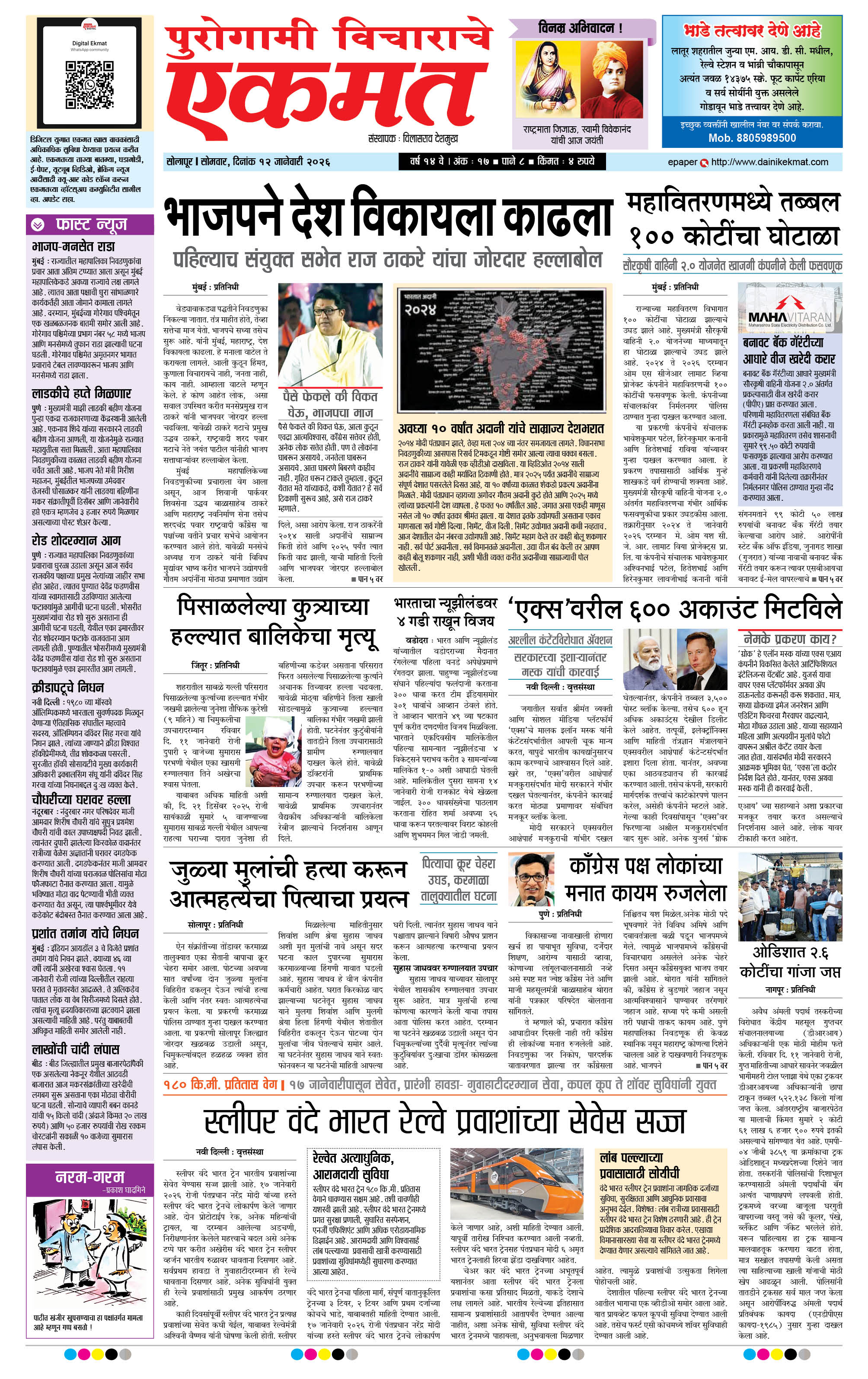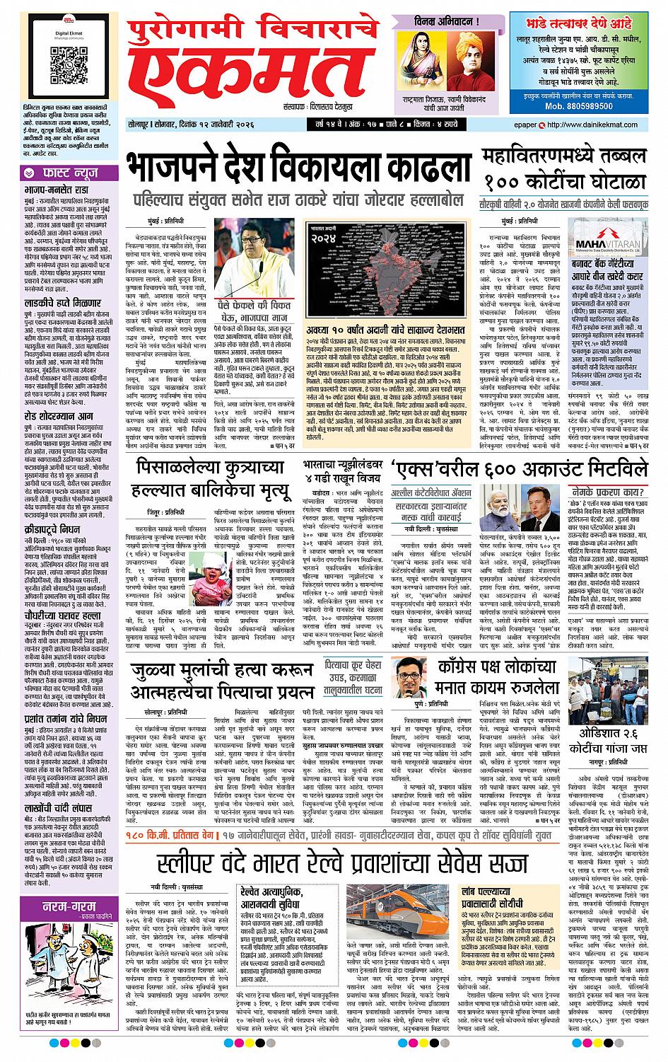 Solapur January 12, 2026 << First << 1 >> Last >> Page 1Page 2Page 3Page 4Page 5Page 6Page 7Page 8 × Solapur page- 1page- 2page- 3page- 4page- 5page- 6page- 7page- 8 << First << 1 >> Last >> page- 1page- 2page- 3page- 4page- 5page- 6page- 7page- 8 page- 1