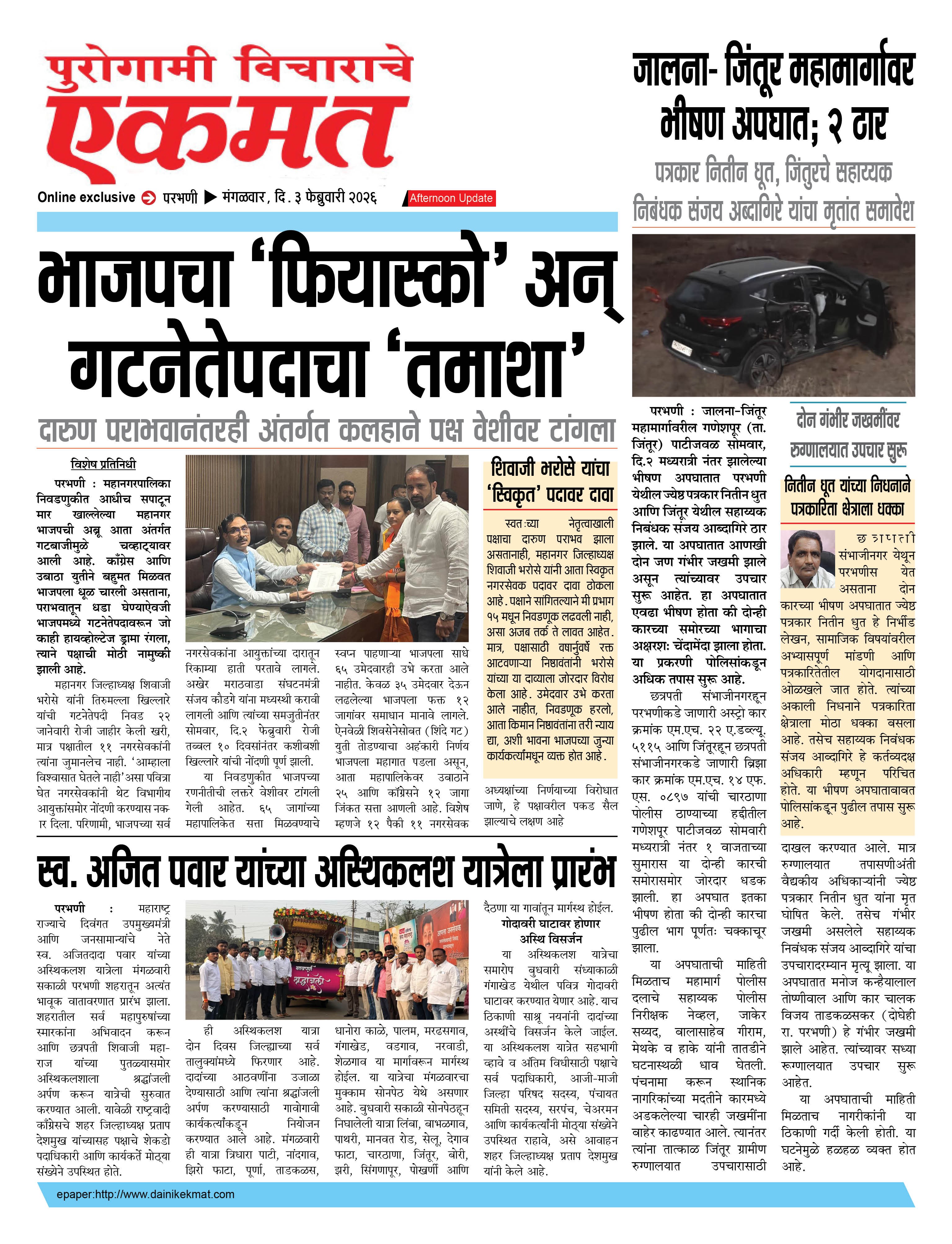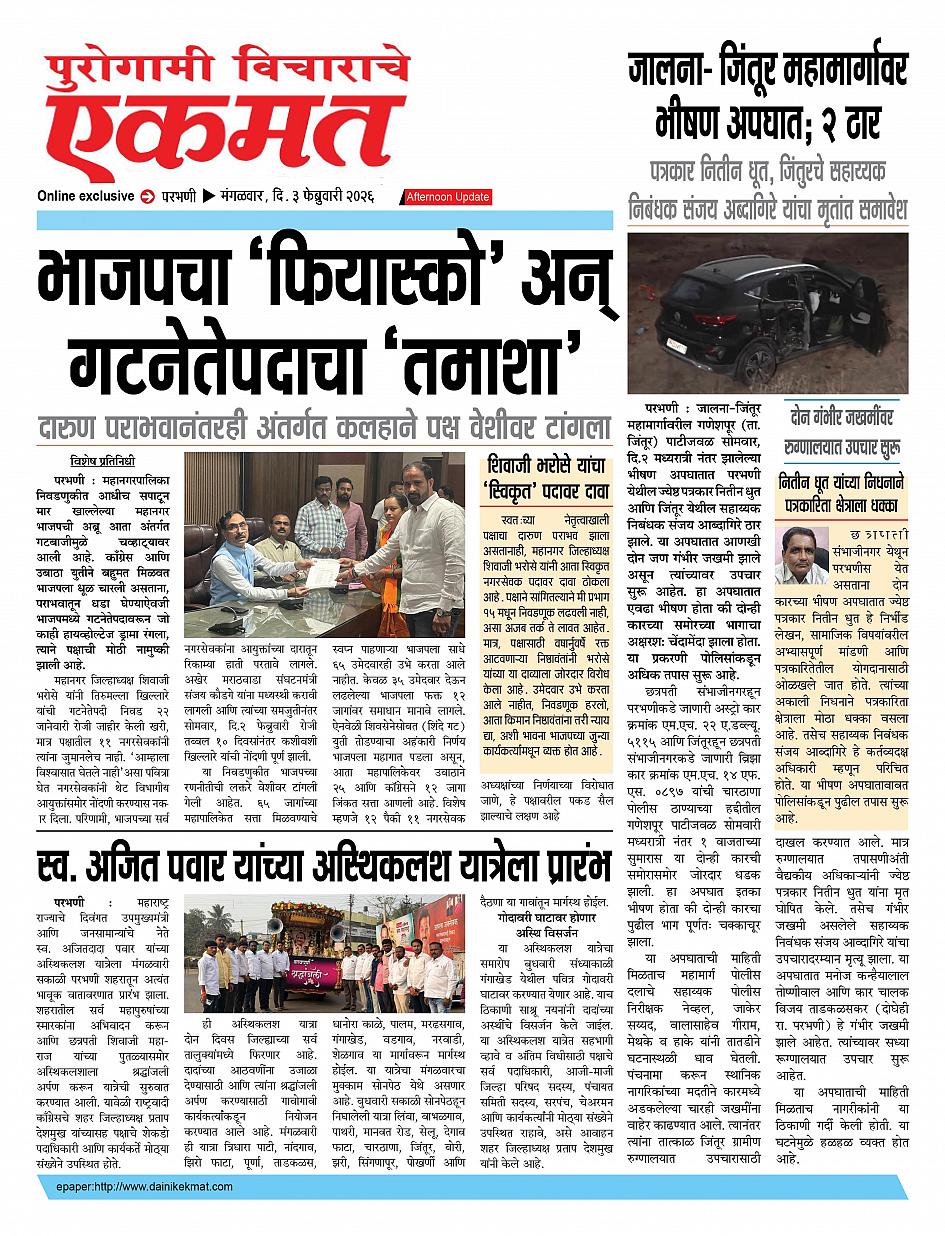 parbhani Afternoon February 03, 2026 Page 1 × parbhani Afternoon 03 Feb buletin 2026 03 Feb buletin 2026 03 Feb buletin 2026