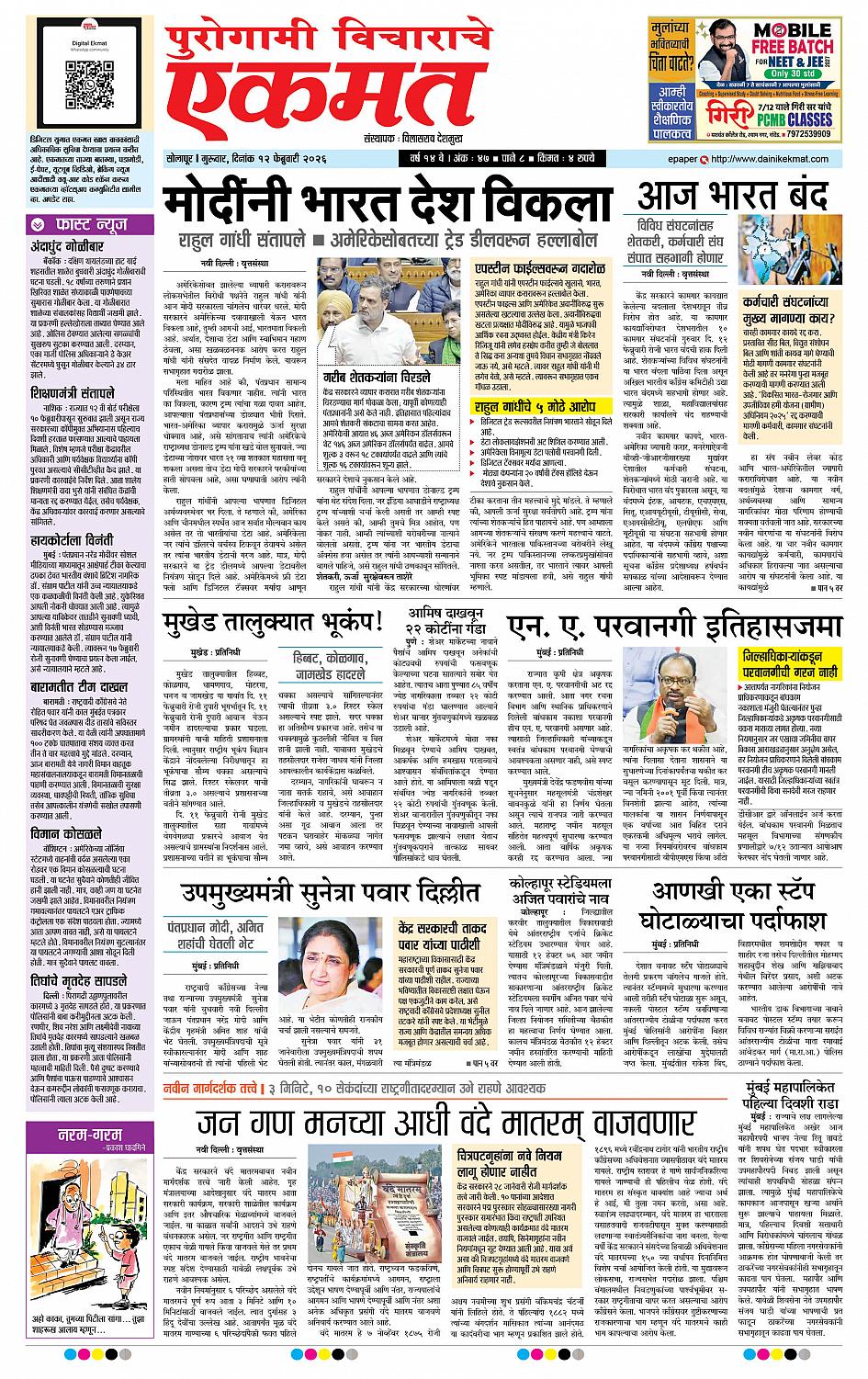 Solapur February 12, 2026 << First << 1 >> Last >> Page 1Page 2Page 3Page 4Page 5Page 6Page 7Page 8 × Solapur page- 1page- 2page- 3page- 4page- 5page- 6page- 7page- 8 << First << 1 >> Last >> page- 1page- 2page- 3page- 4page- 5page- 6page- 7page- 8 page- 1