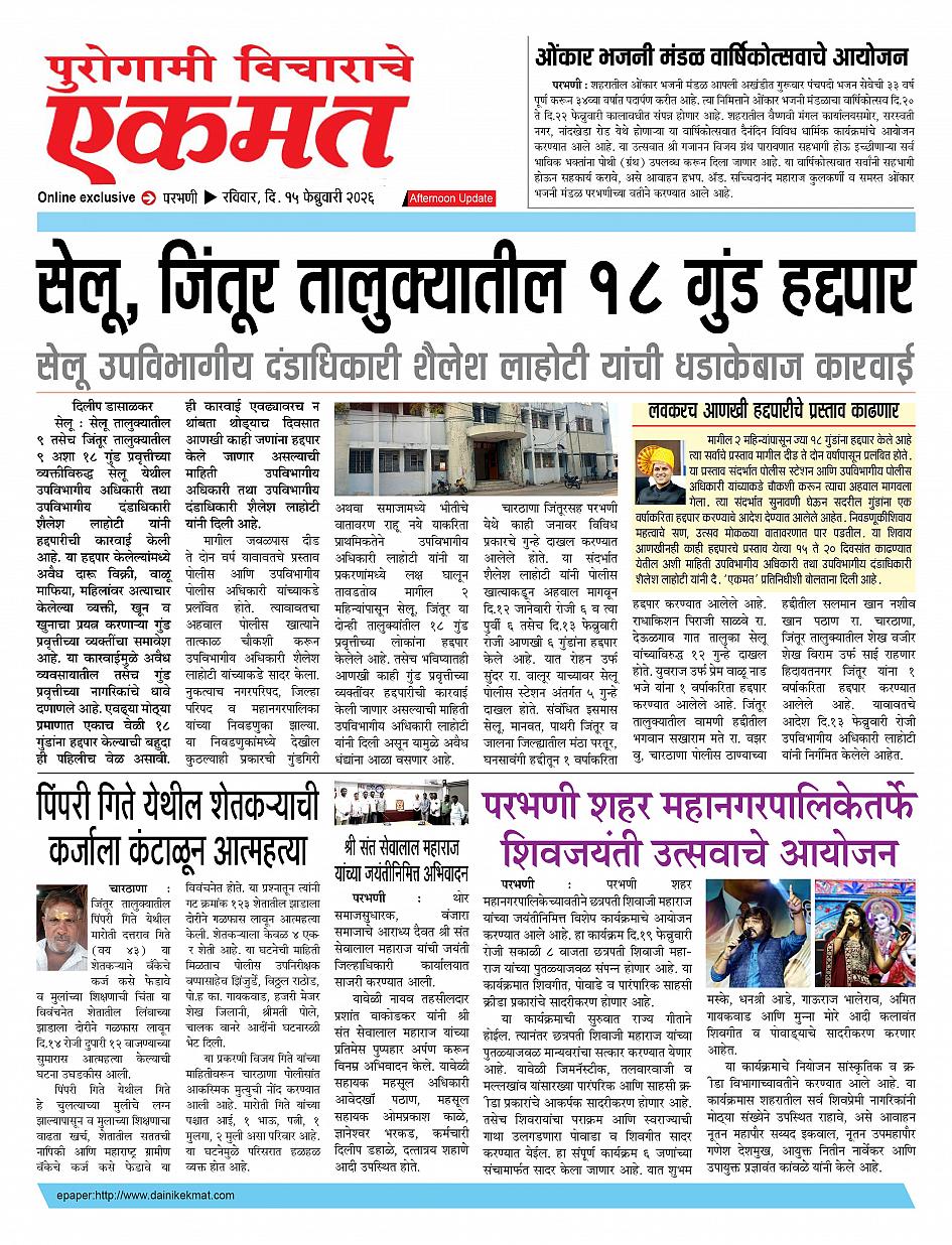 parbhani Afternoon February 15, 2026 Page 1 × parbhani Afternoon 15 Feb buletin 2026 15 Feb buletin 2026 15 Feb buletin 2026