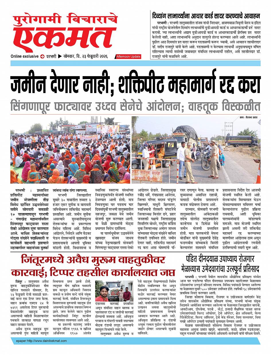 parbhani Afternoon February 23, 2026 Page 1 × parbhani Afternoon 23 Feb buletin 2026 23 Feb buletin 2026 23 Feb buletin 2026