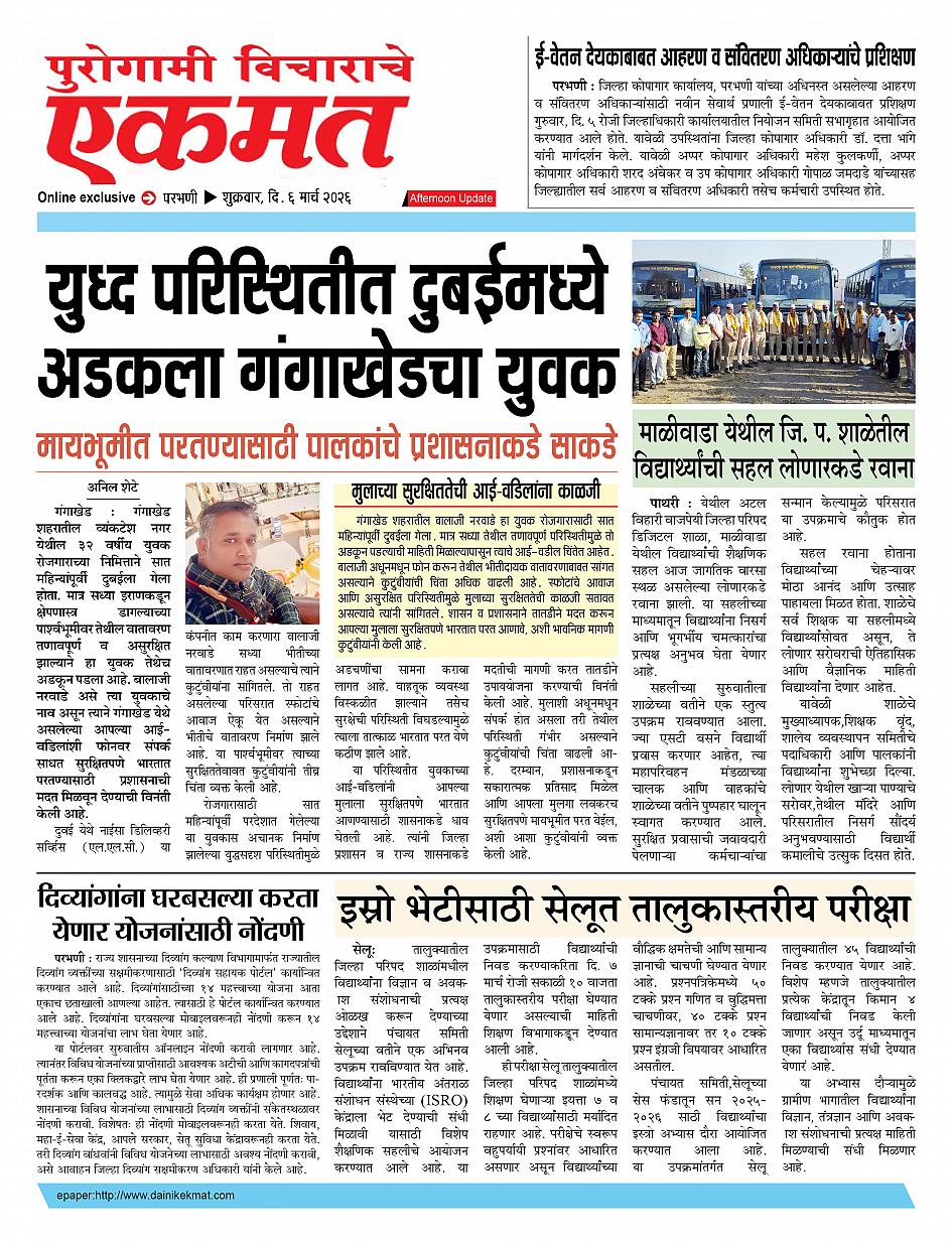 parbhani Afternoon March 06, 2026 Page 1 × parbhani Afternoon 6 March 2026 buletin 6 March 2026 buletin 6 March 2026 buletin