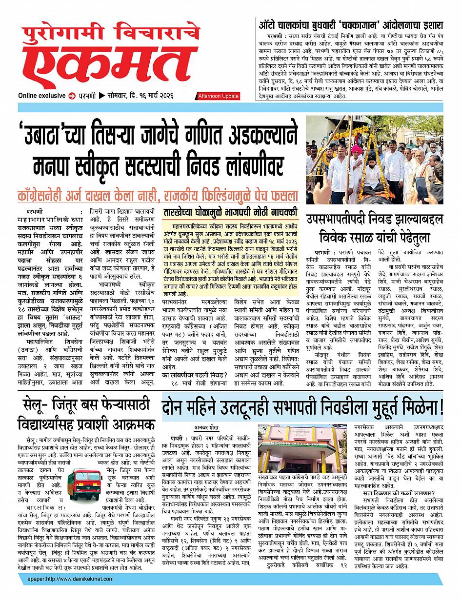 parbhani Afternoon March 16, 2026 Page 1 × parbhani Afternoon 16 March 2026 buletin 16 March 2026 buletin 16 March 2026 buletin