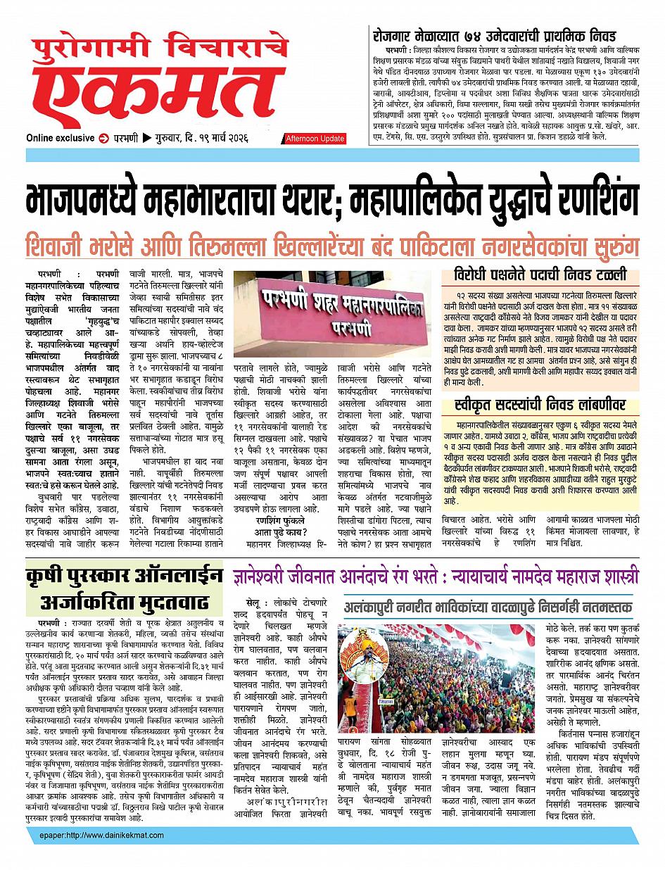 parbhani Afternoon March 19, 2026 Page 1 × parbhani Afternoon 19 March 2026 buletin 19 March 2026 buletin 19 March 2026 buletin
